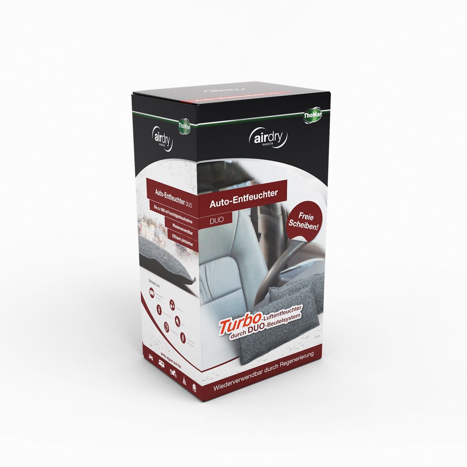 Wie ein Magnet zieht der airdry Auto-Entfeuchter die Feuchtigkeit aus der Luft des Innenraums Ihres Fahrzeugs, die in dem natürlichen Wirkgranulat gespeichert wird. Der Entfeuchter eignet sich ideal, um Autos, Yachten, Boote, Wohnwagen und Reisemobile vor Feuchtigkeit zu schützen.